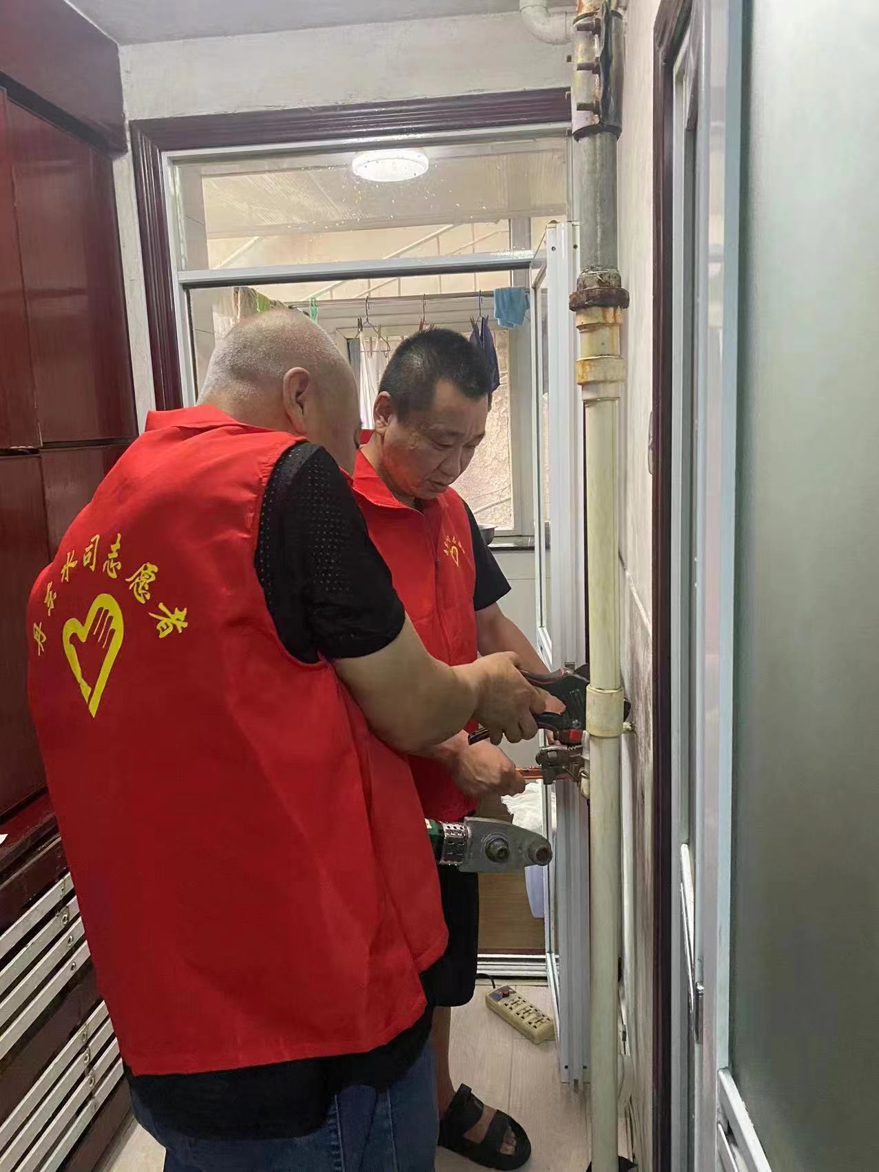 同日,元寶處黨支部組織黨員志愿者來到砂輪廠小區(qū)為社區(qū)居民供水設施進行義務維修。